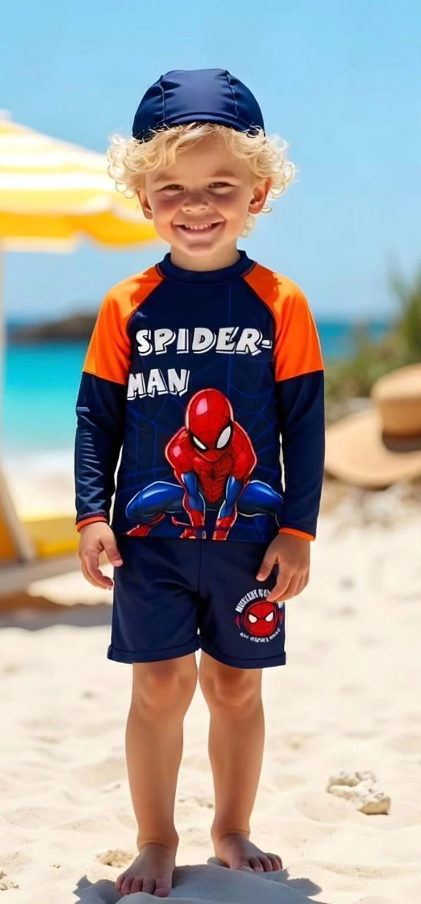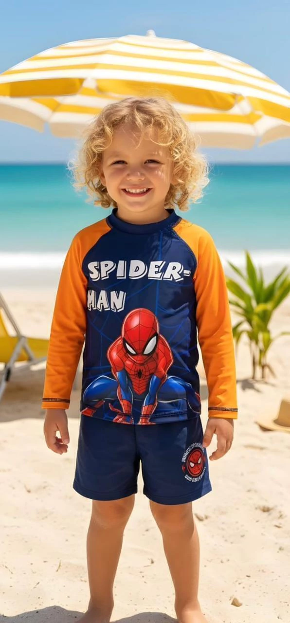 Descubrí el Conjunto Spiderman protección UV, (3 PIEZAS (REMERA. SHOET Y GORRITO). Ideal para que los niños disfruten del sol en la playa o la pileta con total seguridad. Este conjunto está diseñado con tejidos que bloquean los rayos solares, cuidando la piel delicada de los más chicos. Perfecto para días soleados, combina comodidad y diversión con estampados de personajes que encantan a los niños. Disponible en talles para que cada niño tenga su ajuste ideal. ¡Protección y estilo en un solo conjunto!