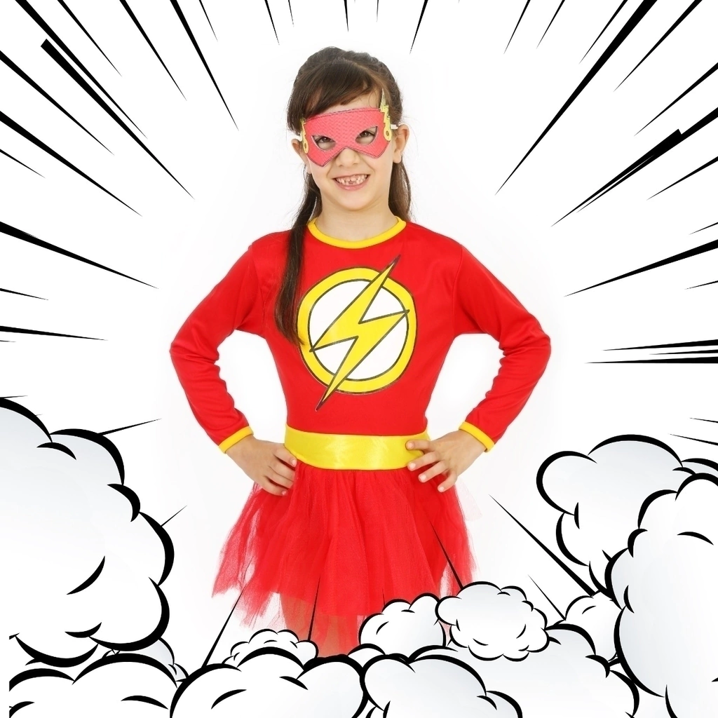 Disfraz nena FLASH CON TUTÚ Y ANTIFAZ