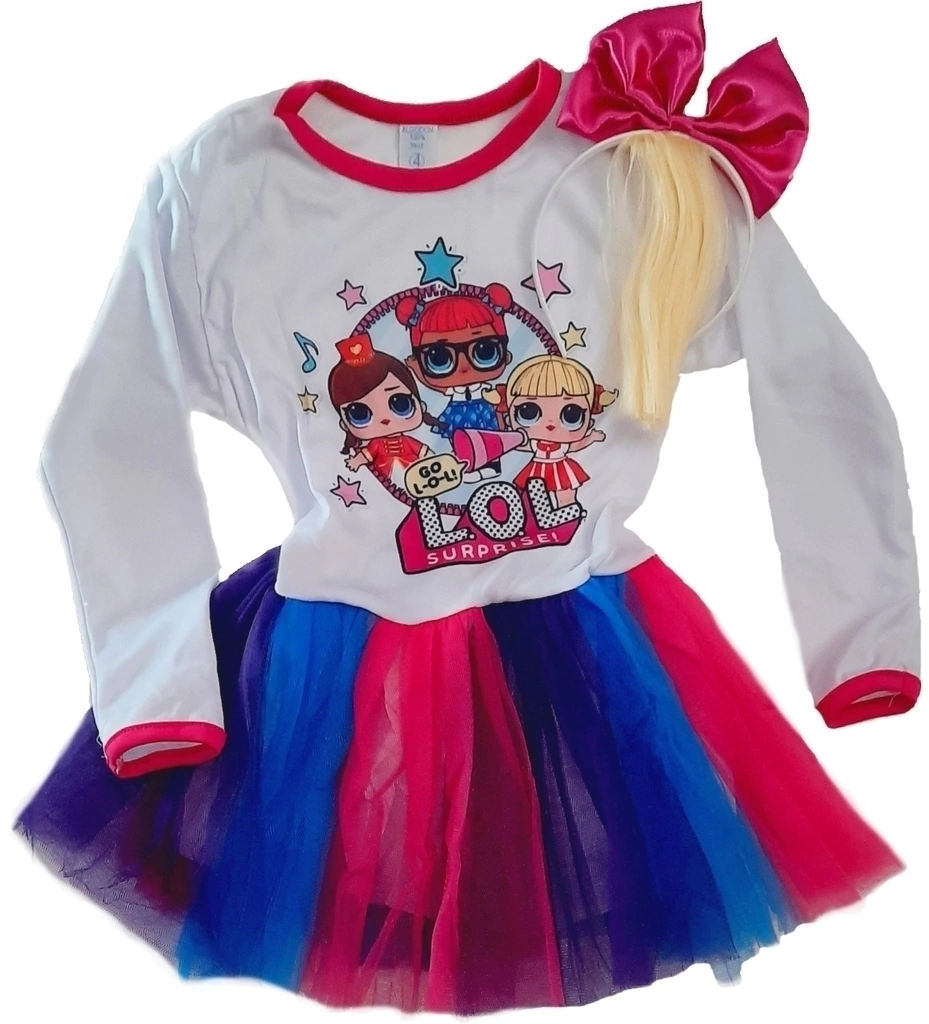 Disfraz LOL POP-COLORES VIBRANTES + VINCHA POMPÓN