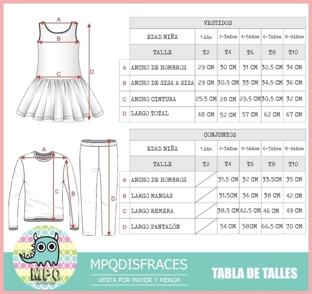 GUÍA DE TALLES-VER TABLA DE MEDIDAS EN IMÁGENES DE PUBLICACIÓN- Si tenés dudas, siempre inclinate por el más grande- Los talles son mas bien chicos. Viene en Talle 4 (2/3 años) Talle 6 (3/4 años) Talle 8 ( 5/6 años) y Talle 10 (7/8 años).